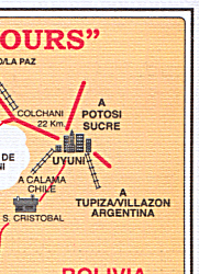 Wir bewegten uns zunächst auf dem östlichen Weg nach Norden bis Uyuni, dann über den Salar de Uyuni nach Westen und schließlich wieder zurück nach Süden zur Grenze.