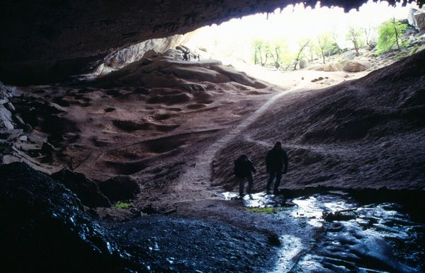 Wer genau hinsieht, kann am Linken Rand ein Milodon und zwei nur halb so große Menschen davor erkennen. Das Milodon ist ein lebensgroßes Kunststoff-Modell des Milodons, daß hier gefunden wurde.