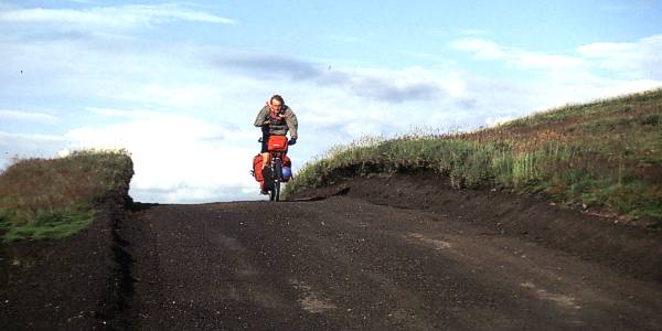 Bis zum Gebiet der Geysire im Haukadalur ist es nur noch ein Katzensprung, der aber durch starken Gegenwind stark in die Länge gezogen wird. Hier finden wir die schönsten Geysire der Insel. Der Stóri Geysir, der Namensgeber aller heißen Springquellen auf der Welt, sprang früher bis zu 70m hoch. Aber seit den 70ern gilt er als tot. Erst seit einigen Jahren wird er am Sonnabend vor dem Bankfeiertag (Anfang August) künstlich zum Leben erweckt, was von Tausenden Isländern und Touristen mit Spannung verfolgt wird.