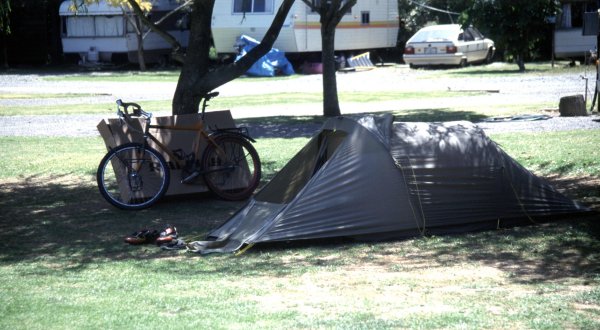 Die Reise ist jetzt fast vorbei, neben dem Zelt steht schon der Karton für den Rückflug.