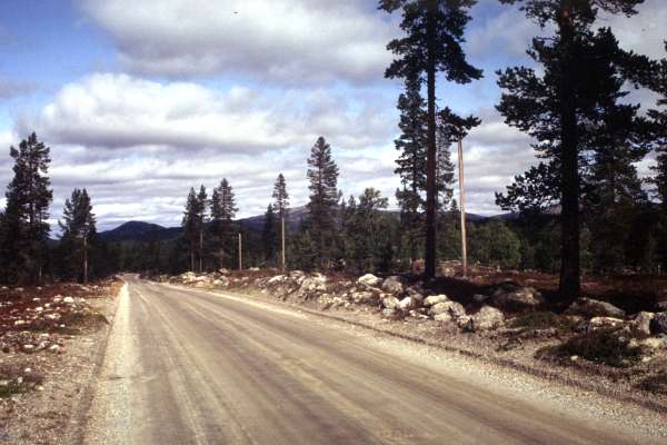 Gegen 10.00 hatte ich mich nach einem ausgiebigen Frühstück verabschiedet und die Sachen zusammengepackt. Nach ca. 8km war ich an der norwegischen Reichsgrenze, wo es nur einen Schlagbaum, ein Viehgitter auf der Straße und einen Zaun beiderseits der Straße gab.