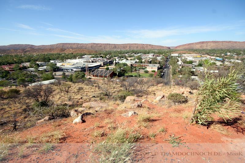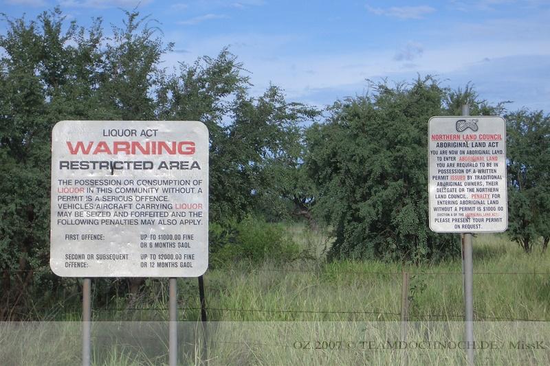 Die Ausläufer von Alice erstrecken sich uns weit entgegen und im Vergleich zu allen anderen Orten erscheint es fast wie eine Großstadt. Allerdings anscheinend auch mit deren Problemen. Schon am Eingang sehen wir eine große Gruppe von Aborigines, von denen einige auch alkoholisiert erscheinen.