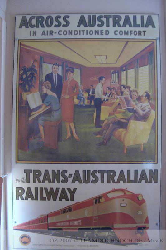 Wir fahren aber trotzdem hin, da es fast auf dem Weg liegt und haben Glück, es ist doch bis 5.00 Uhr geöffnet. Zu sehen bekommen wir zunächst eine Diesellok und drei Wagons. Es handelt sich um einen alten Schlafwaggon, einen Waggon der sowohl Sitzplätze als auch eine kleine Küche enthält und einen Salonwagen.