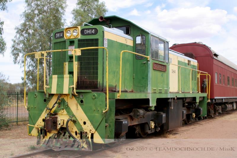 In Tennant Creek kommt auch die Bahn wieder bis an die Straße und so fahren wir kurz zum Bahnhof. Auch hier wieder Heuschrecken ohne Ende und wir lassen uns vertreiben und brechen gleich wieder auf. Die Bahn begleitet ab hier die Straße über viele Kilometer, einen Zug sehen wir in der Zeit aber nicht.