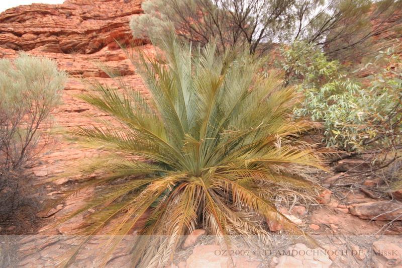 Wir nehmen alle Seitenwege zum Lookout und auch zum Garden of Eden mit. Die Runde ist sehr abwechslungsreich, denn neben den steilen Wänden der Schlucht und der üppigen Vegetation im Tal sehen wir auch Felsen, die aussehen wie die Bungles und ganz zum Schluss Palmen, die noch aus der Zeit der Saurier stammen sollen und neben 10 anderen Arten hier seither überlebt haben.