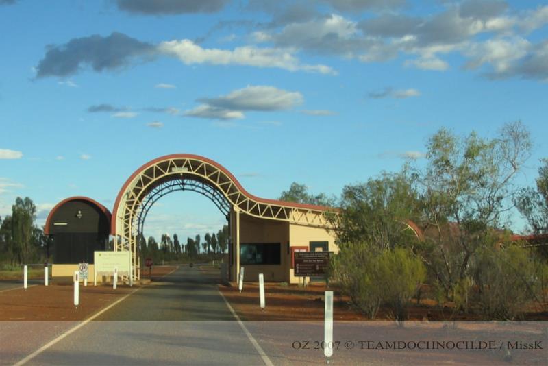 Von hier brechen wir sofort zum Uluru auf, um uns den Sonnenuntergang anzusehen. Der Eintritt für den NP kostet 25 für jeden, ist dafür aber auch für 3 Tage und beliebig viele Ein- und Ausfahrten gültig.