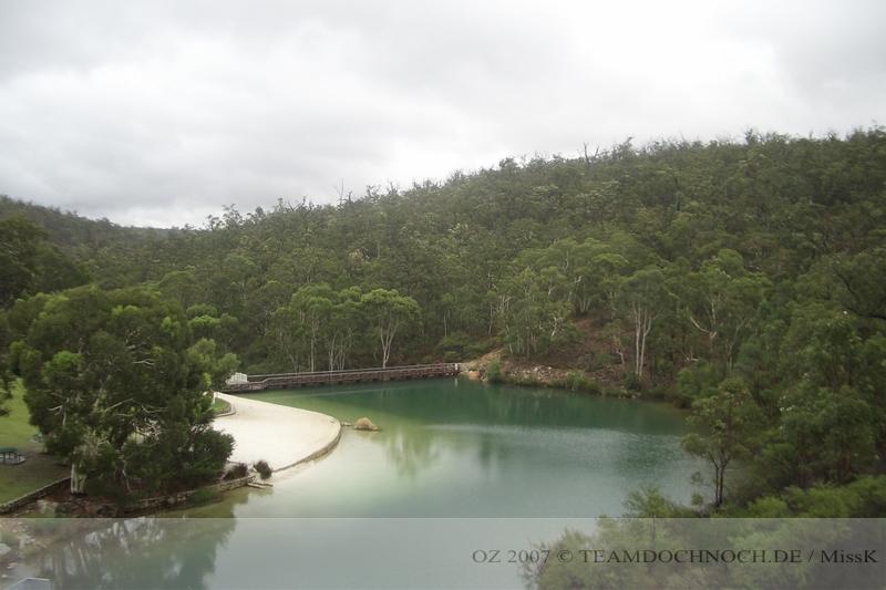 Unsere Nacht verbringen wir am Serpentines Dam südlich von Perth umgeben von Bäumen und auch jetzt regnete es wieder am Morgen. Dadurch war unser Aufstehen etwas verzögert.