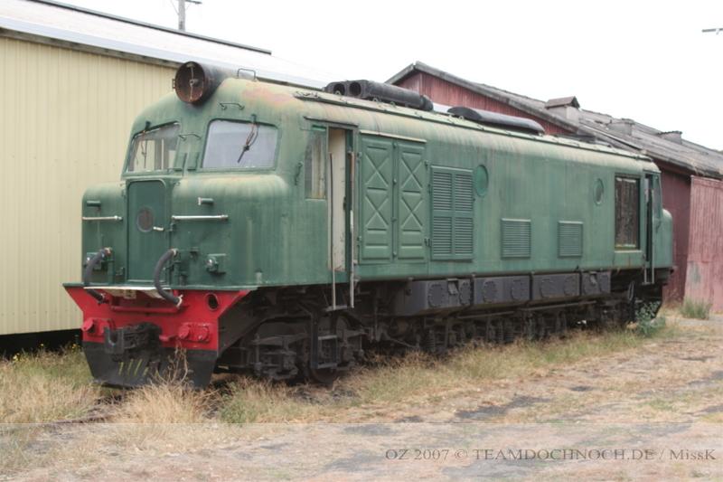 Zurück auf dem Highway kommen wir wieder nicht weit, denn in Pinjarra steht links plötzlich eine alte Diesellok - wir haben die Hothamvalley Museeum Railway erreicht. Neben dieser Diesellok steht auch eine große Anzahl an Personenwagen, ein abfahrbereiter Zug und auch drei Dampfloks, die noch betrieben werden können. Weiter hinten auch eine weitere nicht betriebsfähige Diesellok.