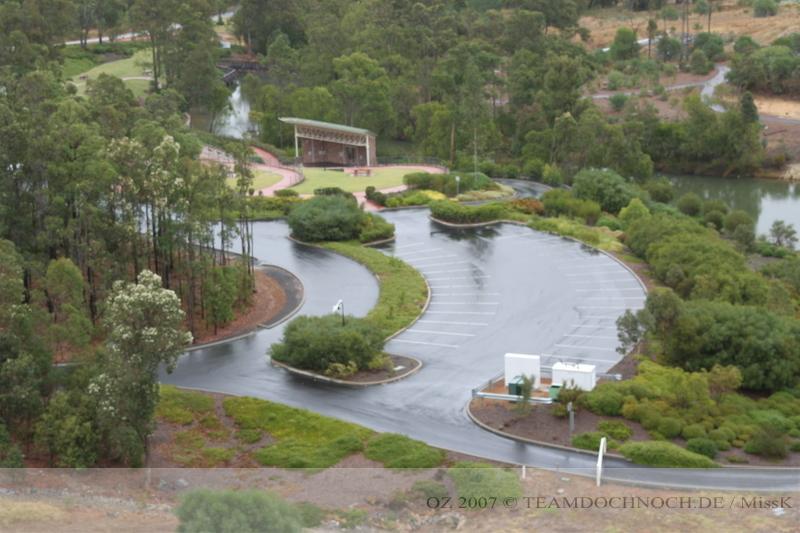 Und da wir gestern auf unserer Runde auch einen Fahrradladen gesehen hatten, gehen wir auch noch Plan B an und kaufen für MissK einen Helm. Noch während wir im Fahrradgeschäft herumstöbern zieht es draußen zu und ein Gewitter geht mit mächtig Krach durch die Stadt. Es wird zunehmend wärmer und die Feuchtigkeit scheint in der Stadt fest zu hängen. Vom Kings Park haben wir eine gute Aussicht auf die Downtown, den Swanriver und die südlichen Stadtteile.