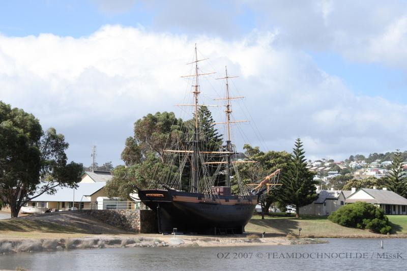 In Albany sahen wir zunächst den Nachbau der Brigg, mit der die ersten Siedler 1827 hierher gebracht wurden und fuhren anschließend am Bahnhof vorbei in die Altstadt. Die liegt auf dem Hügel über dem Meer und obwohl in Albany fast 30.000 Menschen, wirkt es sehr ländlich. Erst später sehen wir, dass es im neueren Teil sehr viel mehr Handel gibt. Über einen langen Weg reihen sich hier die Geschäfte und Betriebe aneinander.