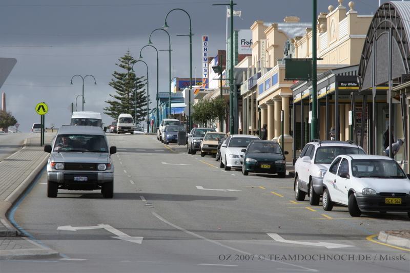 In Bunburry erreichen wir wieder das Meer und kommen zunächst durch ein riesiges Gewerbegebiet. Hier kaufen wir Fliegennetze und eine Karte für den Karijini NP und bei Dickson Electronic auch endlich ein Thermometer - ab jetzt gibt es also auch Temperaturstatik.