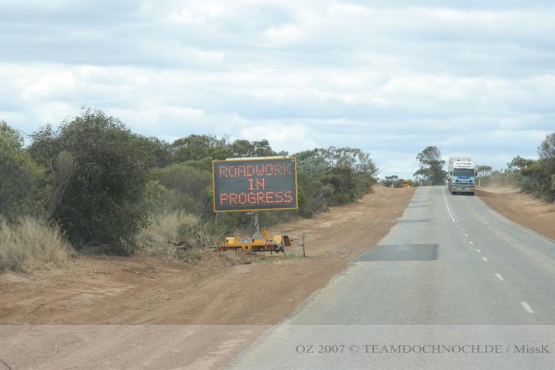 Unterwegs sehen wir viele tote Kängurus und Emus und auch schon viele Roadtrains. Wobei aber schon die normalen LKW kaum weniger bedrohlich wirkten als die Roadtrains.