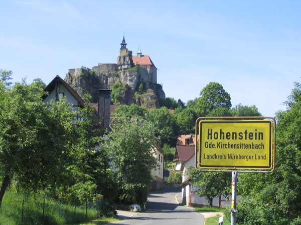 Hohenstein mit der Burg Hohenstein oberhalb des Ortes der Blick entschädigt für die Mühen des Aufstiegs Wasserrad westlich von Hohenstein