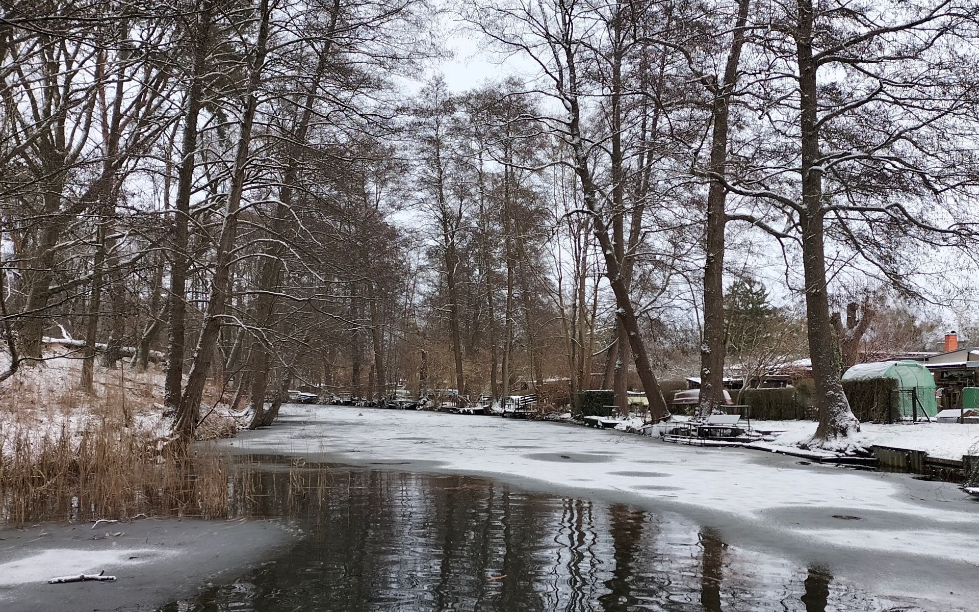 [Update: 23.01.2026] es war wirklich die letzte Gelegenheit, im Januar auf dem Finowkanal zu paddeln. Er fror in den nächsten Tagen bei starkem Frost auch im Bereich von Finowfurt komplett zu. Und auch die warmen Tage zwischendurch halfen nur wenig. Der Stromstrich öffnete sich zwar wieder, die Ränder blieben vor meiner Tür aber stark vereist. Und inzwischen ist der Kanal auch wieder komplett zugefroren.