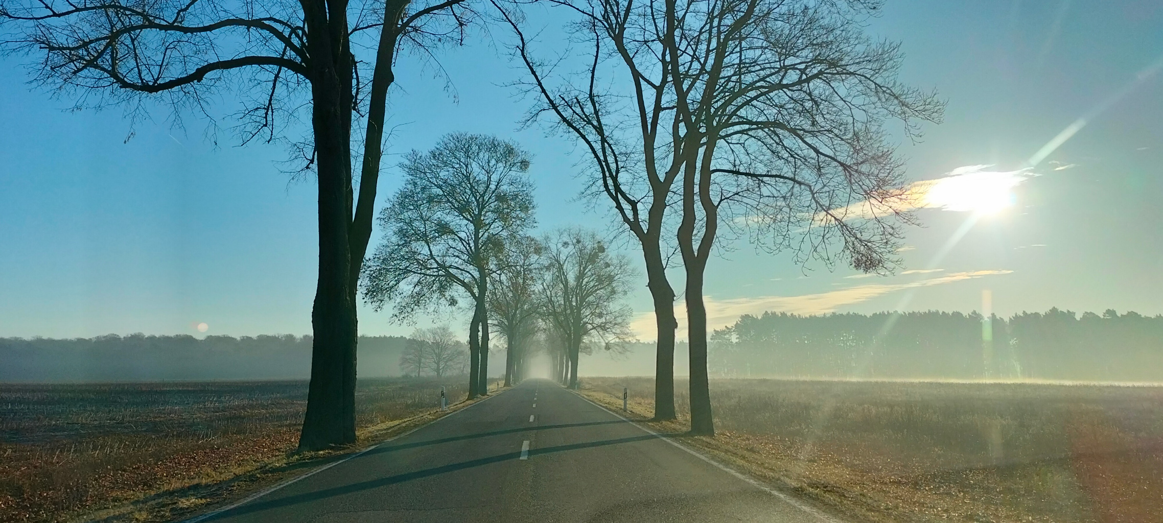Eine Allee am Morgen, die L200|B2 zwischen Biesenthal und Melchow. Es ist ein schöner Anblick und gleichzeitig auch ein melancholischer Blick in die Heimat. Es ist auch mal wieder ein kleiner Abschied.